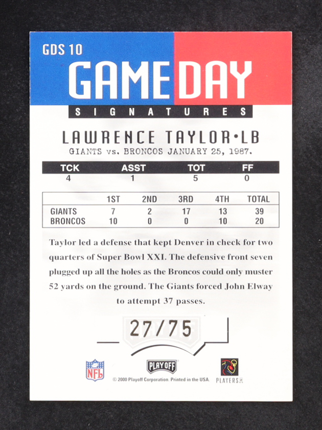 Lawrence Taylor 2000 Playoff Momentum Game Day Signatures #GDS10 #27/75