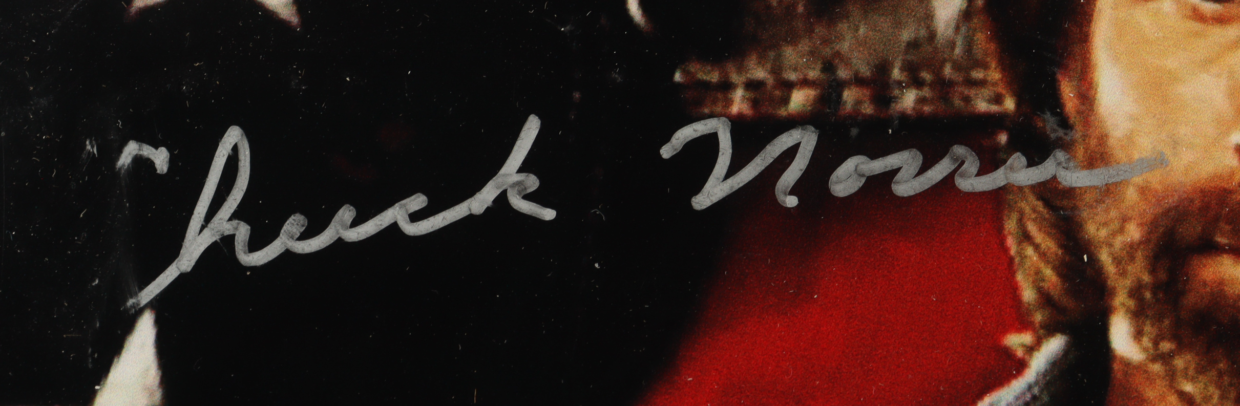 Custom Electric Guitar has been hand-signed on the pick-guard by Chuck Norris. Please note that the signature is slightly smudged.