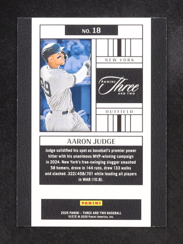 Aaron Judge 2025 Panini Three and Two Award Winning Orange #18 #6/20