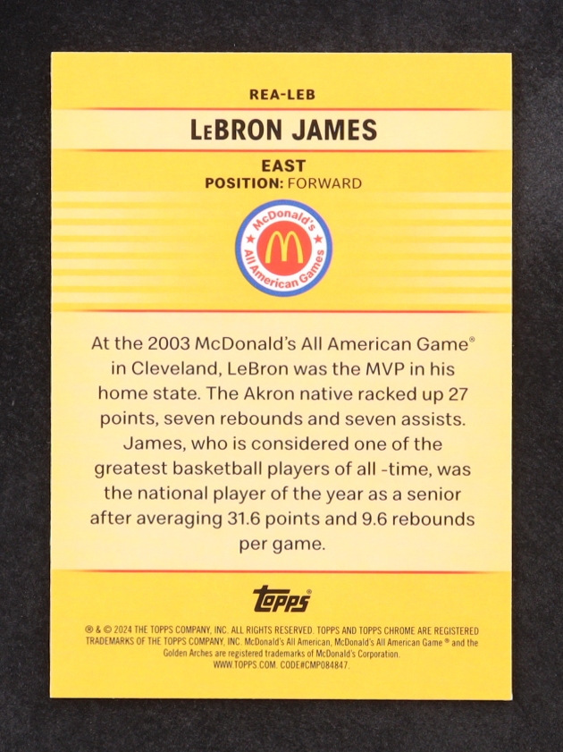 LeBron James 2024 Topps Chrome McDonald's All American Franchise Picks Blue RayWave Refractors #REALEB