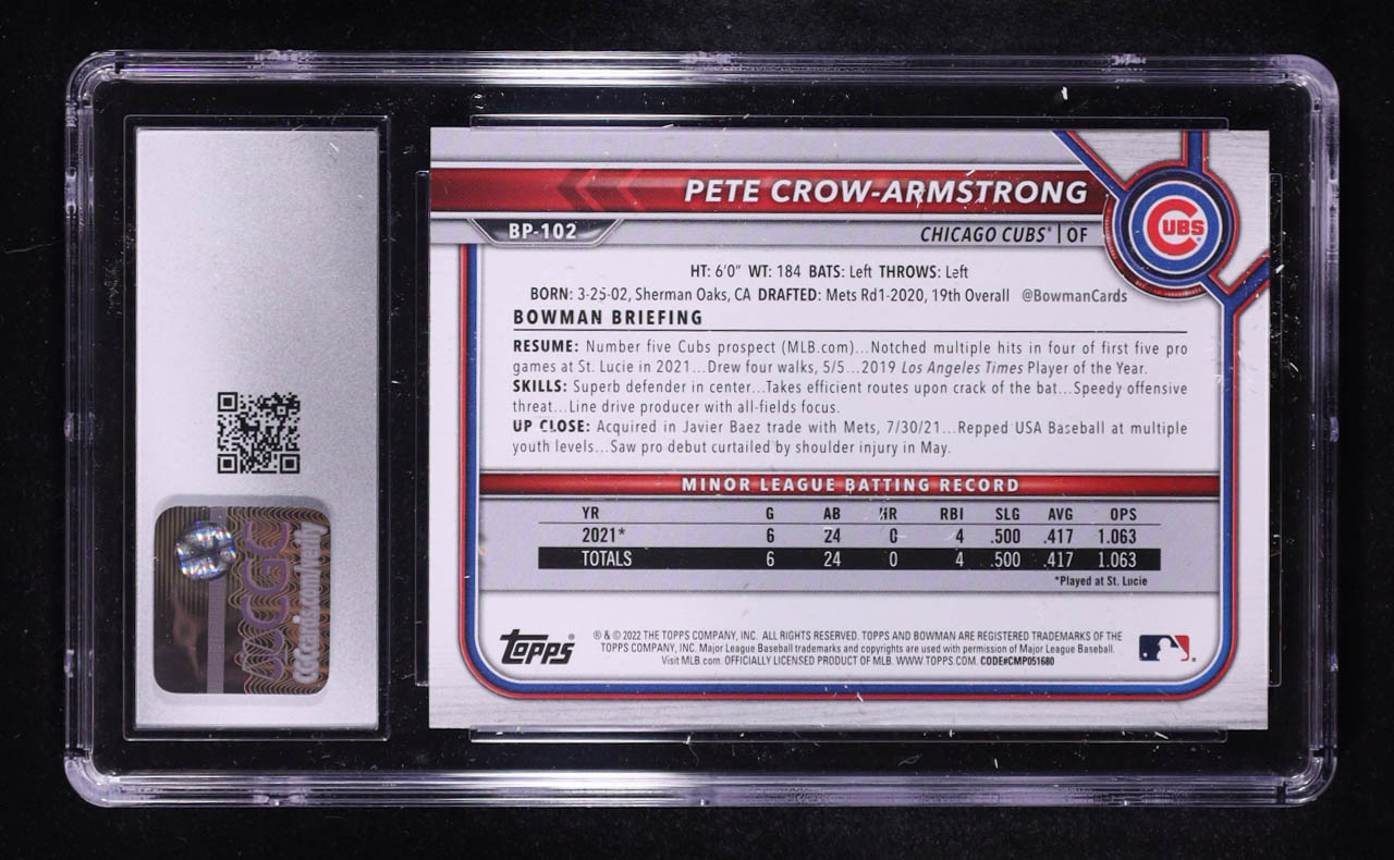 Pete Crow-Armstrong 2022 Bowman Prospects #BP-102 RC (CGC 10)