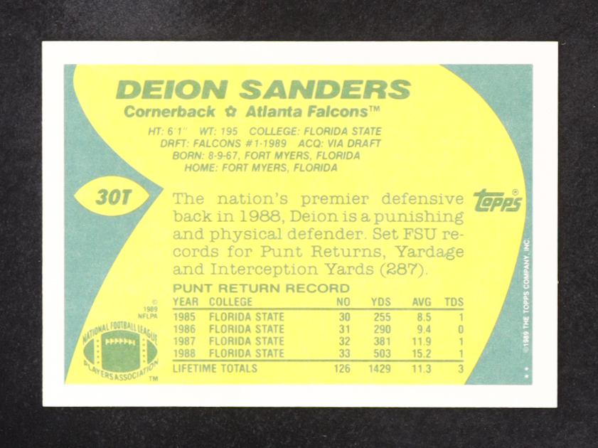 Deion Sanders 1989 Topps Traded #30T RC