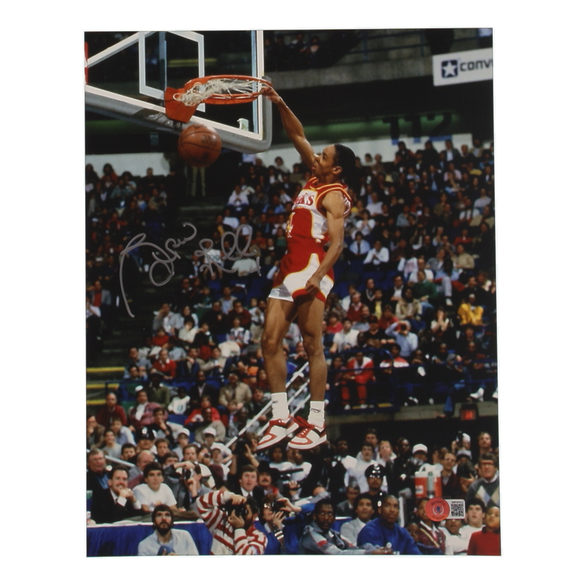 Photo measures 11" x 14" in size and has been hand-signed by Spud Webb (Atlanta Hawks).