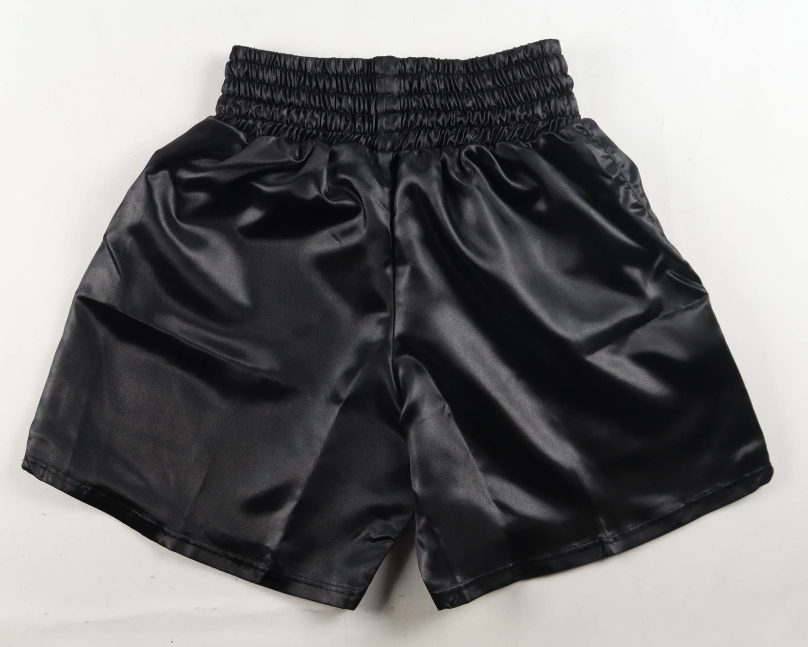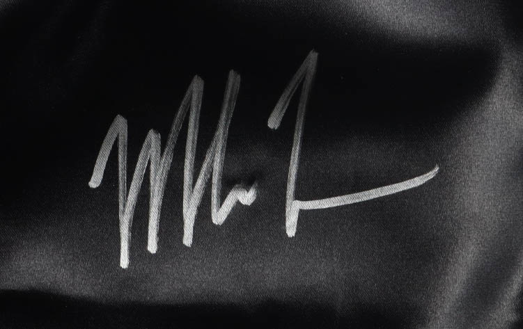 Custom boxing shorts with everything sewn on, size XL. Hand-signed by Mike Tyson (HOF).