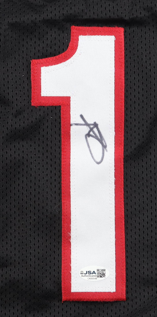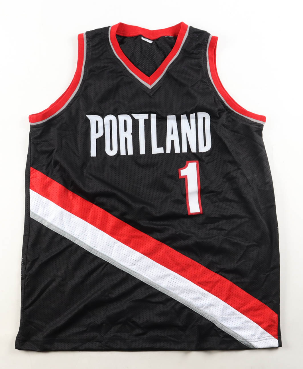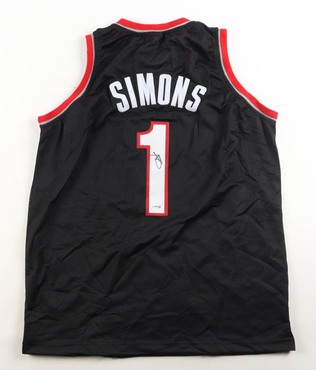 Custom jersey with everything sewn on, size XL. Hand-signed by Anfernee Simons.