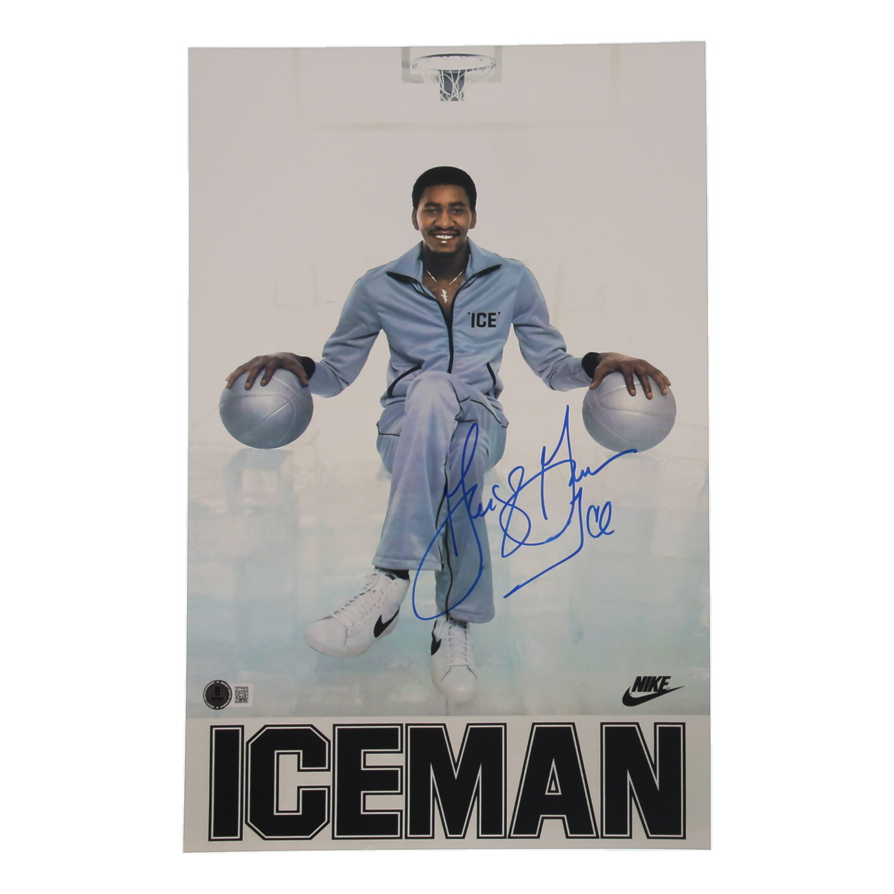 George Gervin Signed 11x17 Photo Inscribed "Ice" (Beckett)