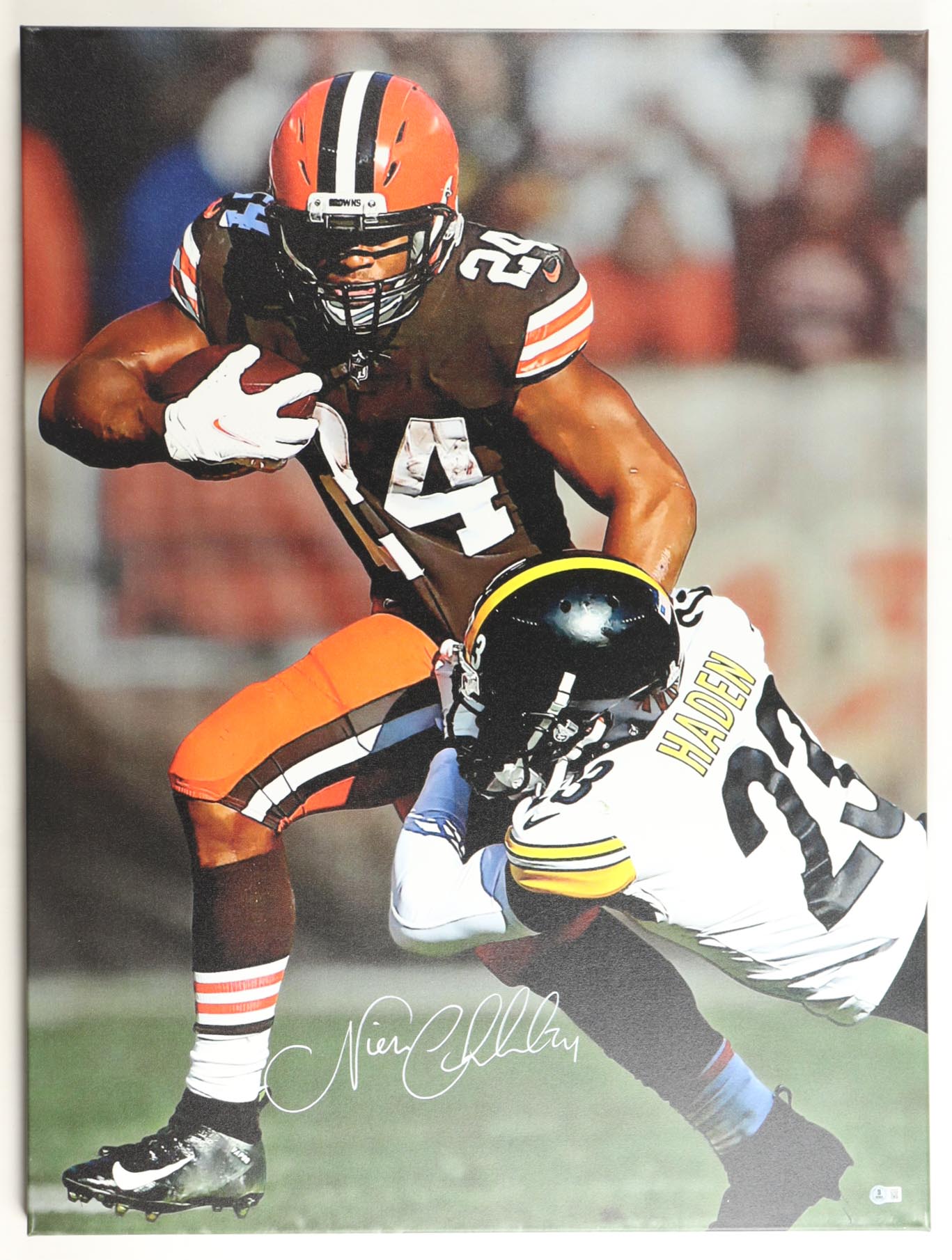 Nick Chubb Signed Browns 29x39 Print on Canvas (Beckett)