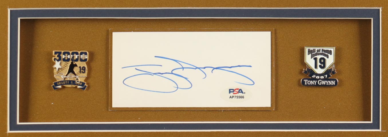 Tony Gwynn Signed Custom Framed Cut Display with Jersey & (2) Gwynn Pins (PSA)