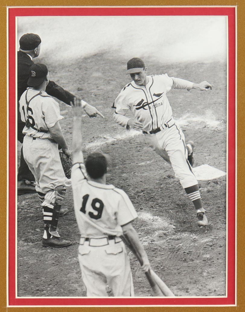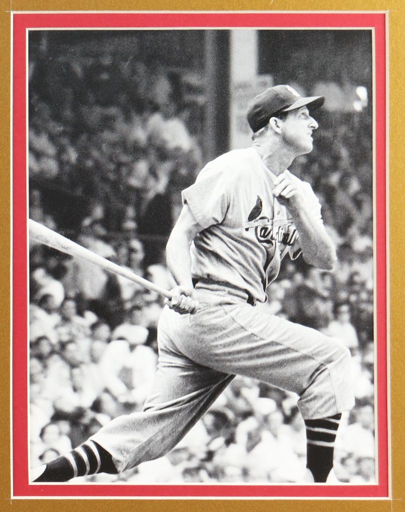 Custom frame display measures approximately 32" x 36" in size and features a jersey and a cut that has been hand-signed by Stan Musial (D. 2014, St. Louis Cardinals, HOF). The display also includes (2) photos and (2) cloth logo patches as well as a Stan Musial Lapel pin.