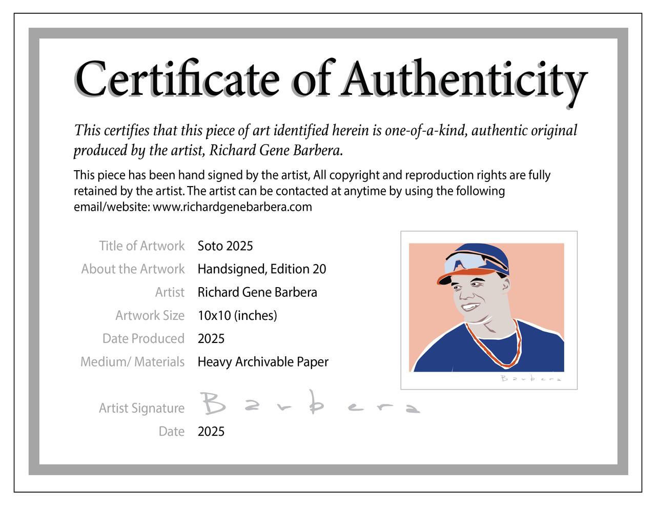 Richard Gene Barbera Signed LE "Classic Series - "Soto" 2025 10x10 Original Art Print (Barbera)