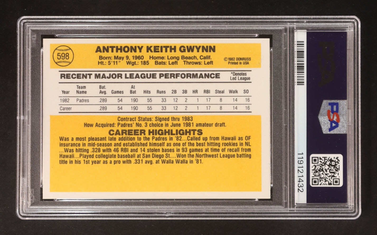 Tony Gwynn 1983 Donruss #598 RC (PSA 7)