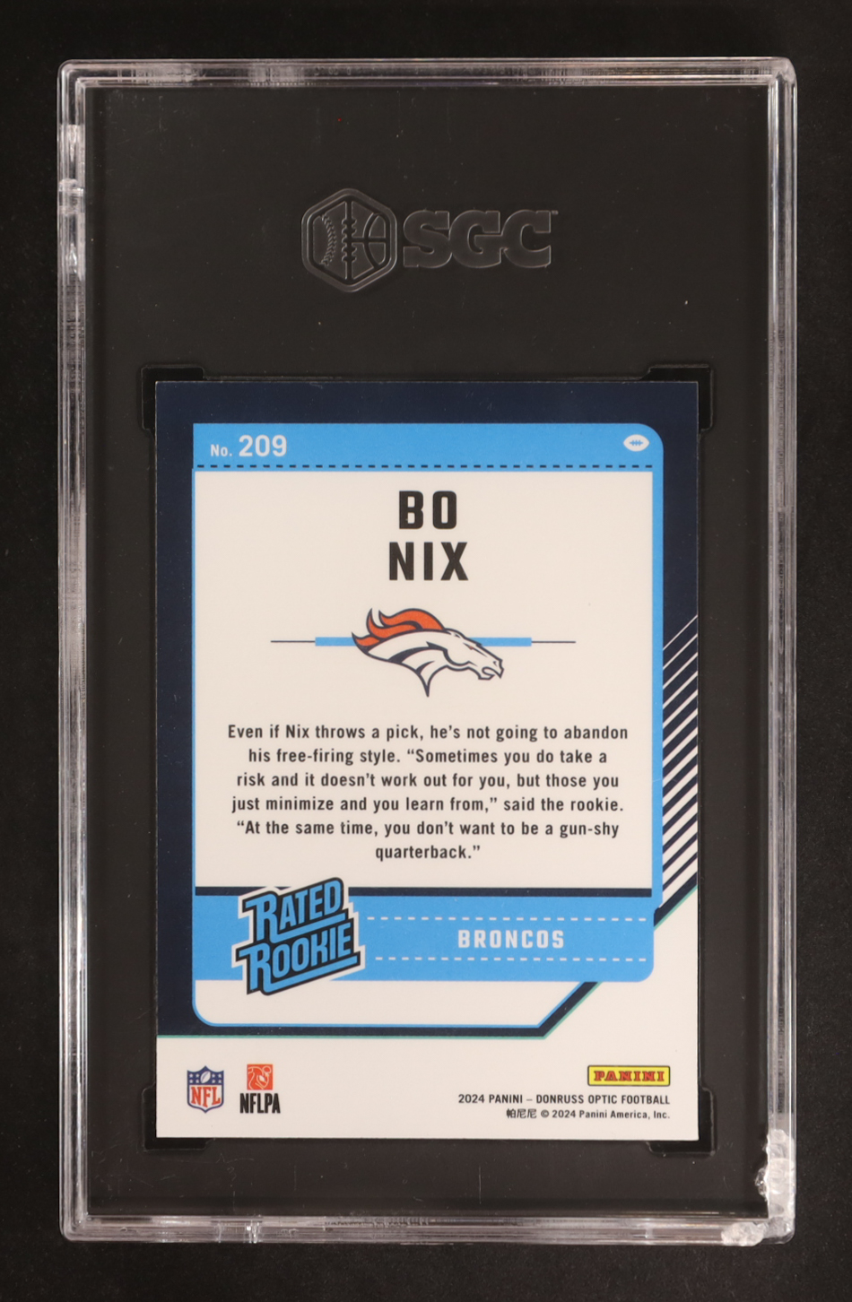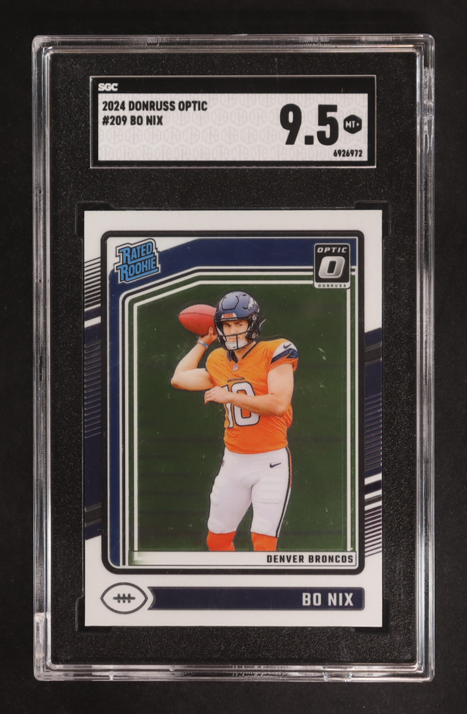 Bo Nix 2024 Donruss Optic #209 RR RC (SGC 9.5)