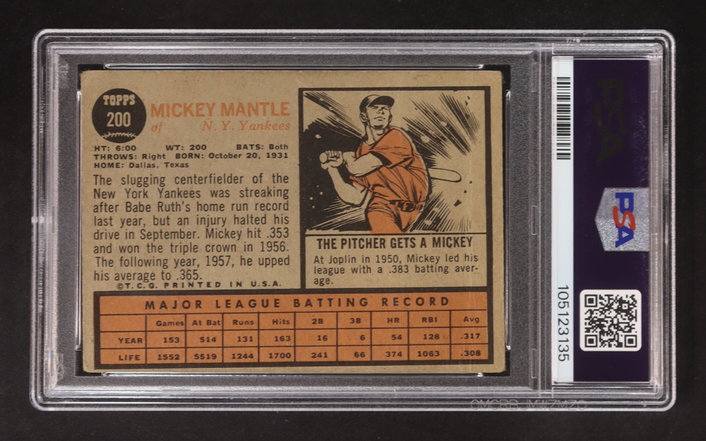 Mickey Mantle 1962 Topps #200 (PSA 1)