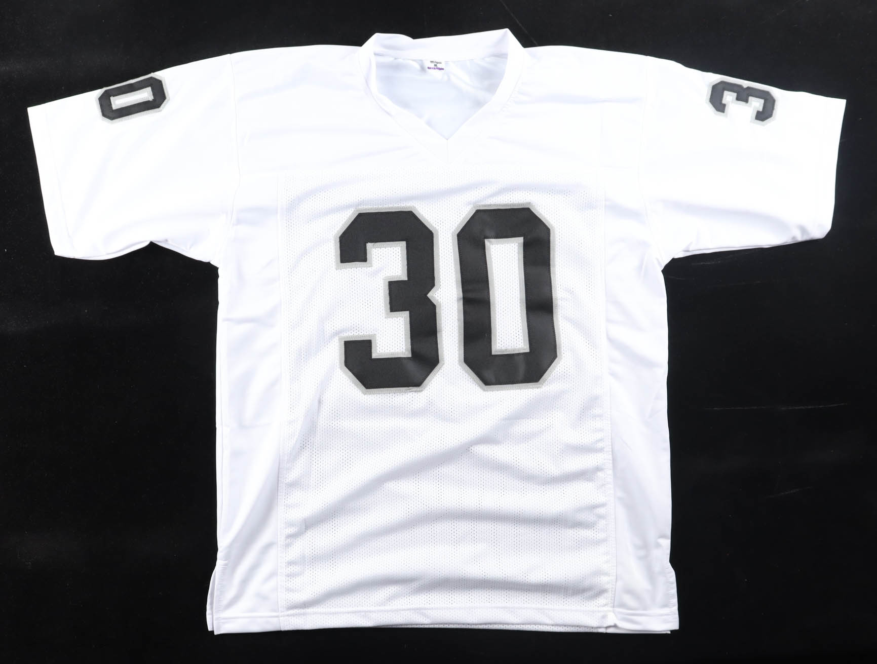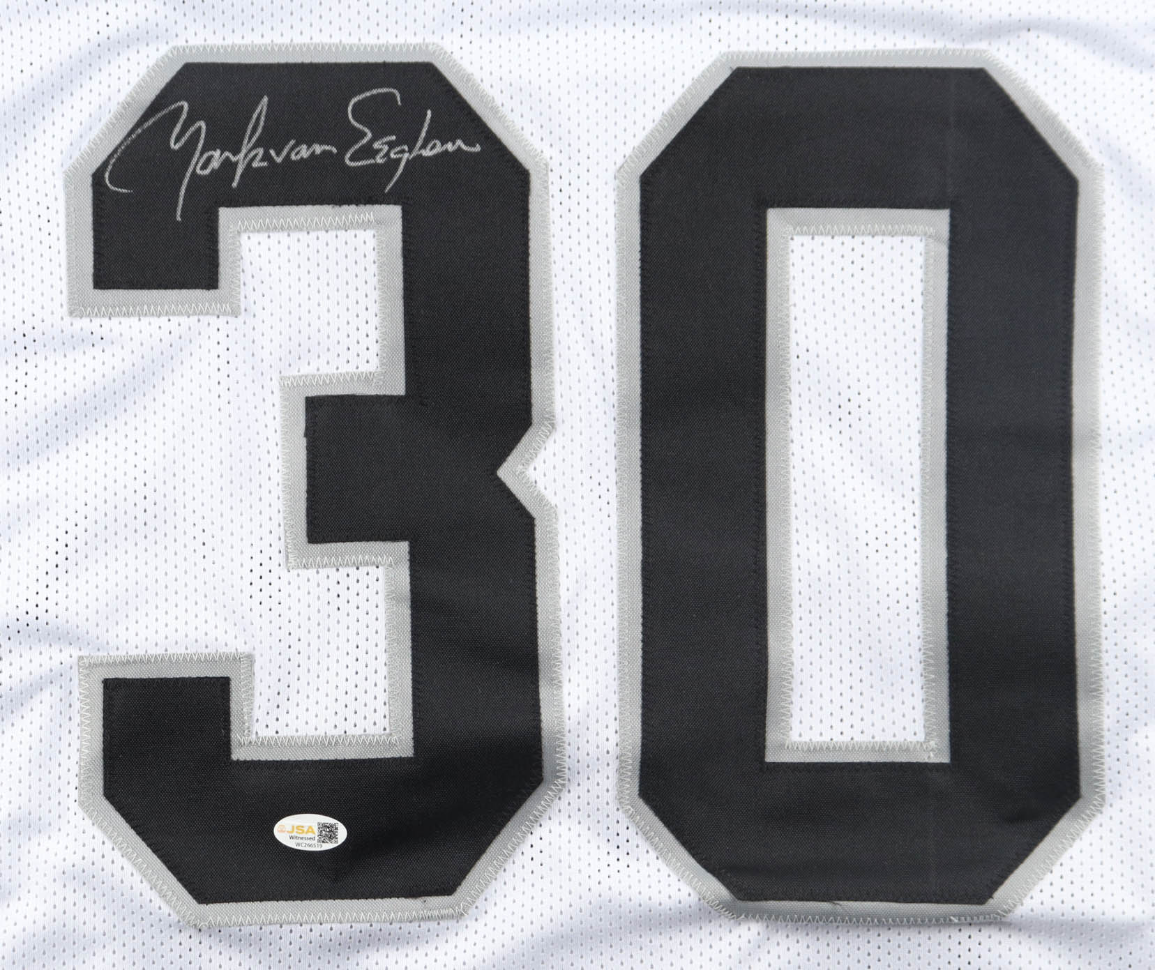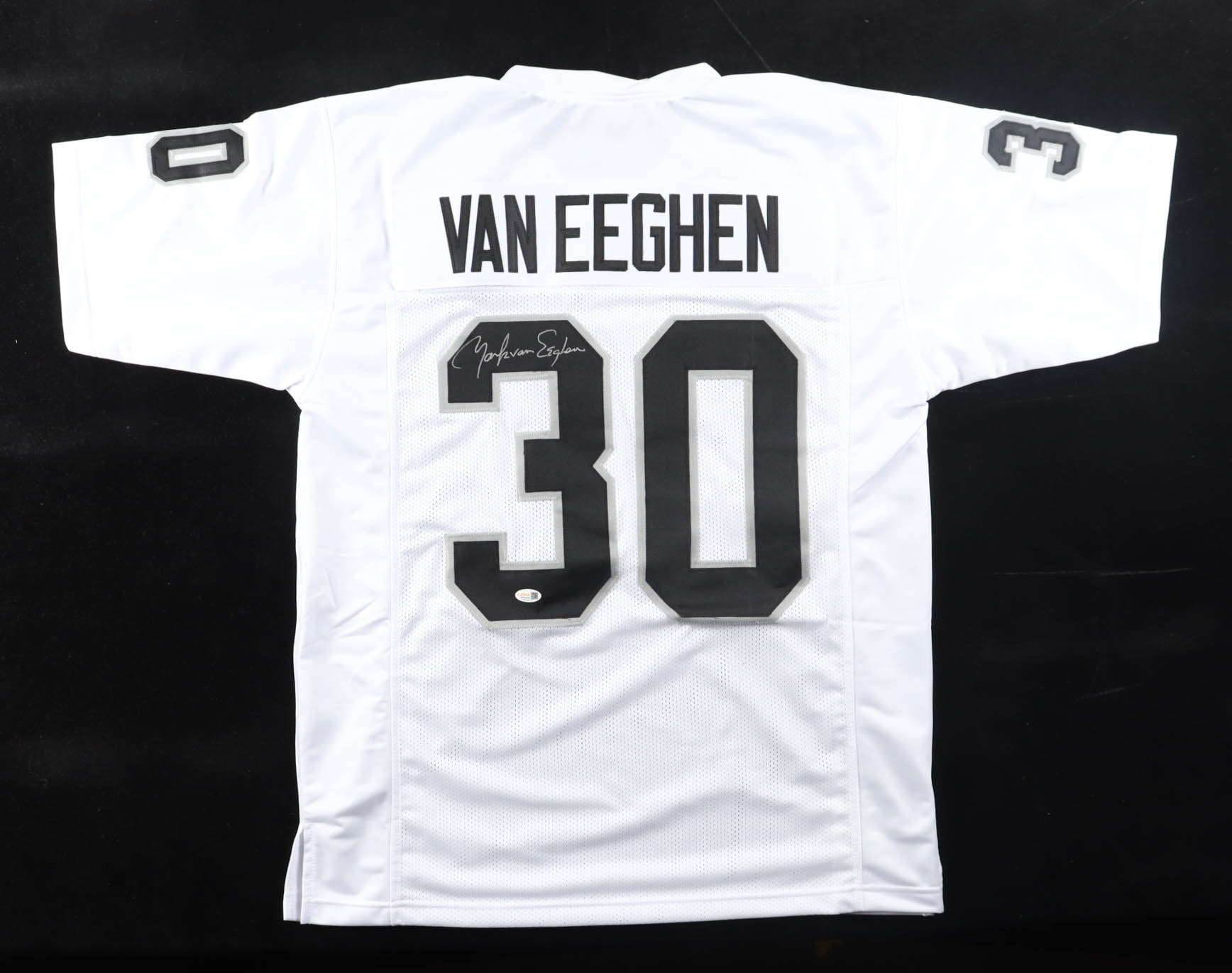 Custom jersey with everything sewn on, size XL. Hand-signed by Mark Van Eeghen.