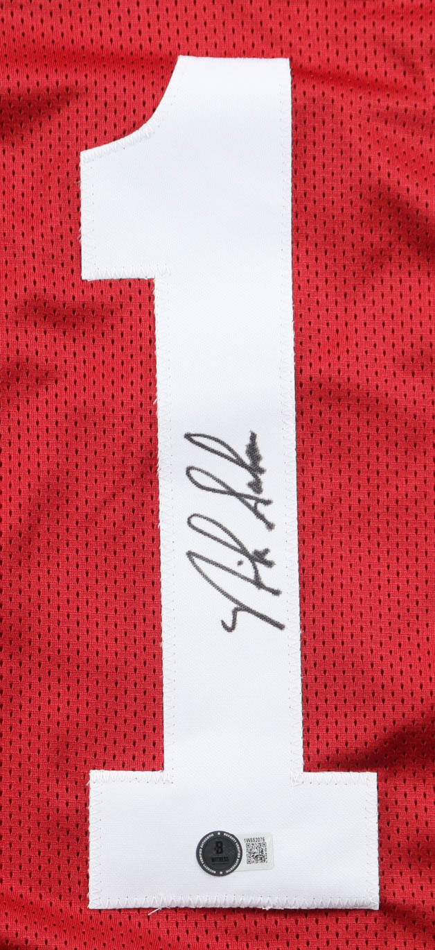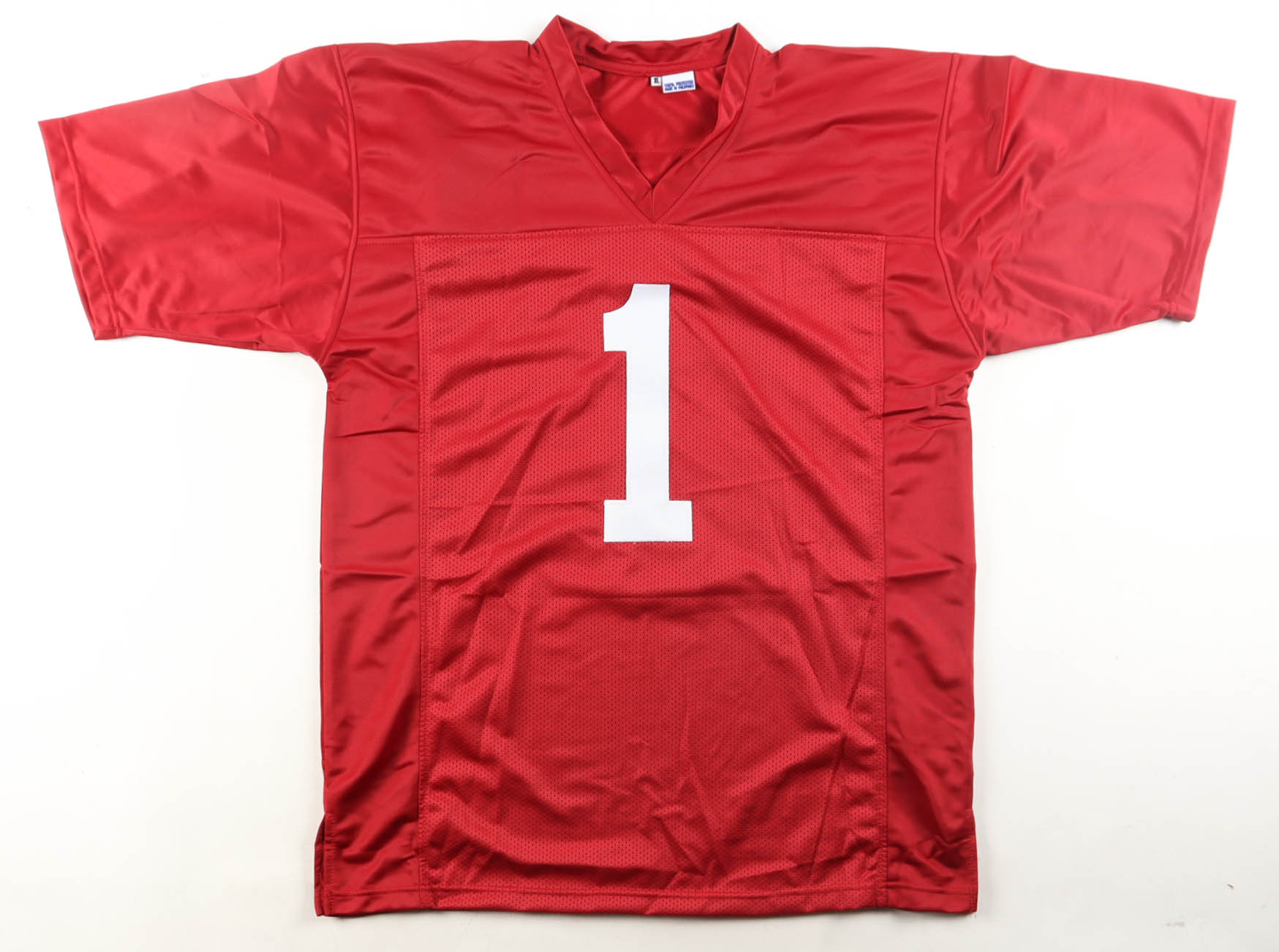 Custom jersey with everything sewn on, size XL. Hand-signed by Nick Saban. Please note, the signature has bled.