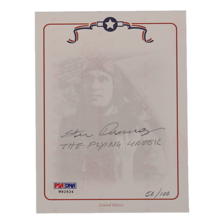 Steve Pisanos Signed LE 4.25x5.5 Cut Inscribed "The Flying Greek" (PSA)