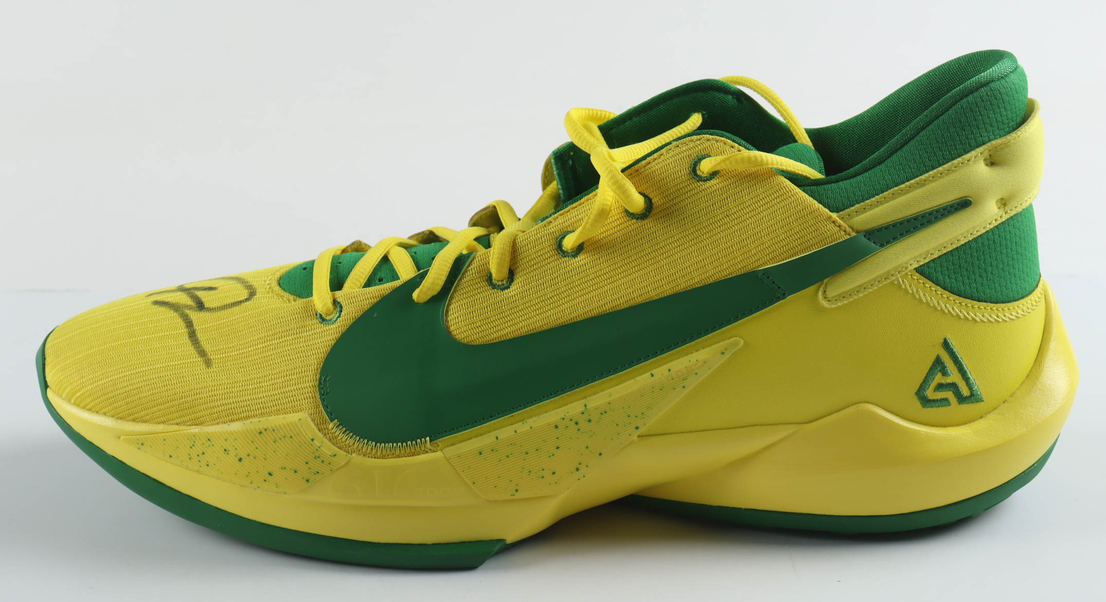 Nike Player Edition Basketball Shoe has been hand-signed by Giannis Antetokounmpo (Milwaukee Bucks).
