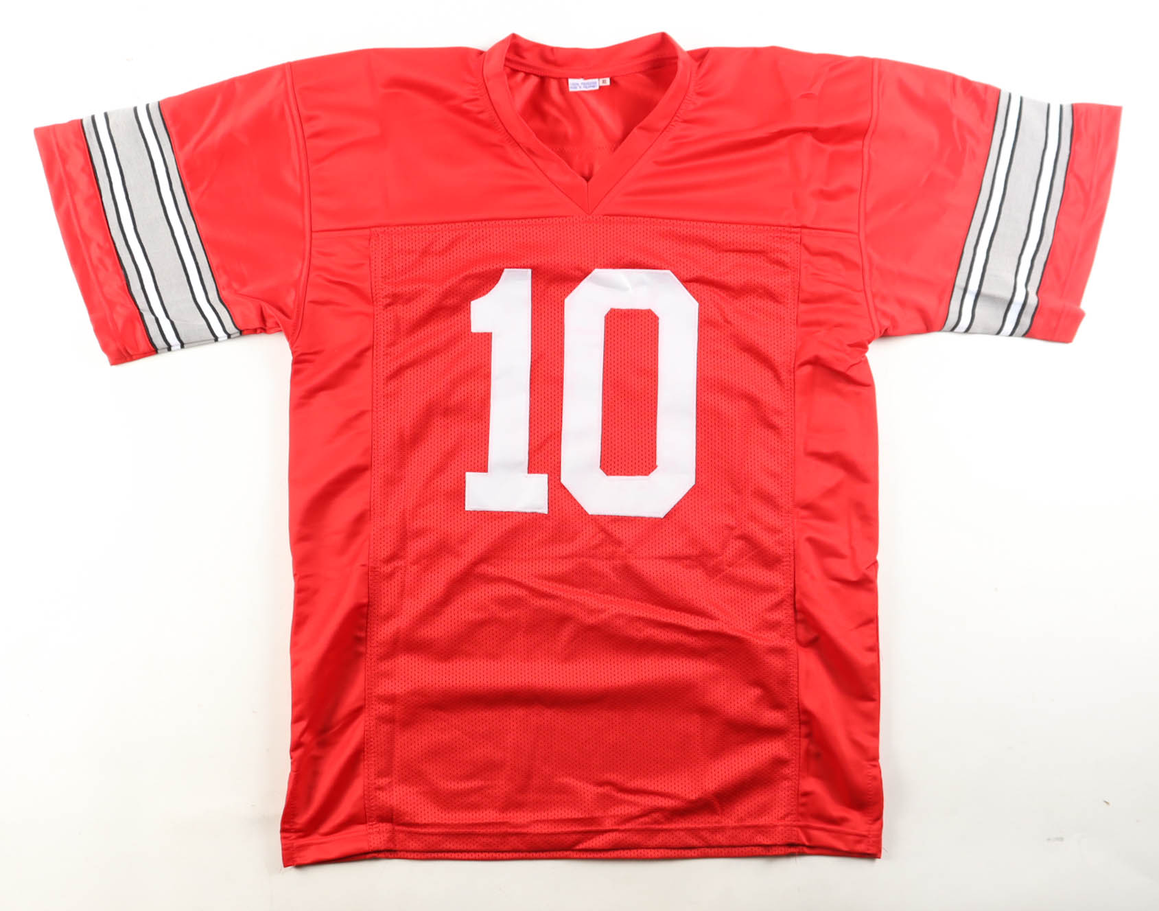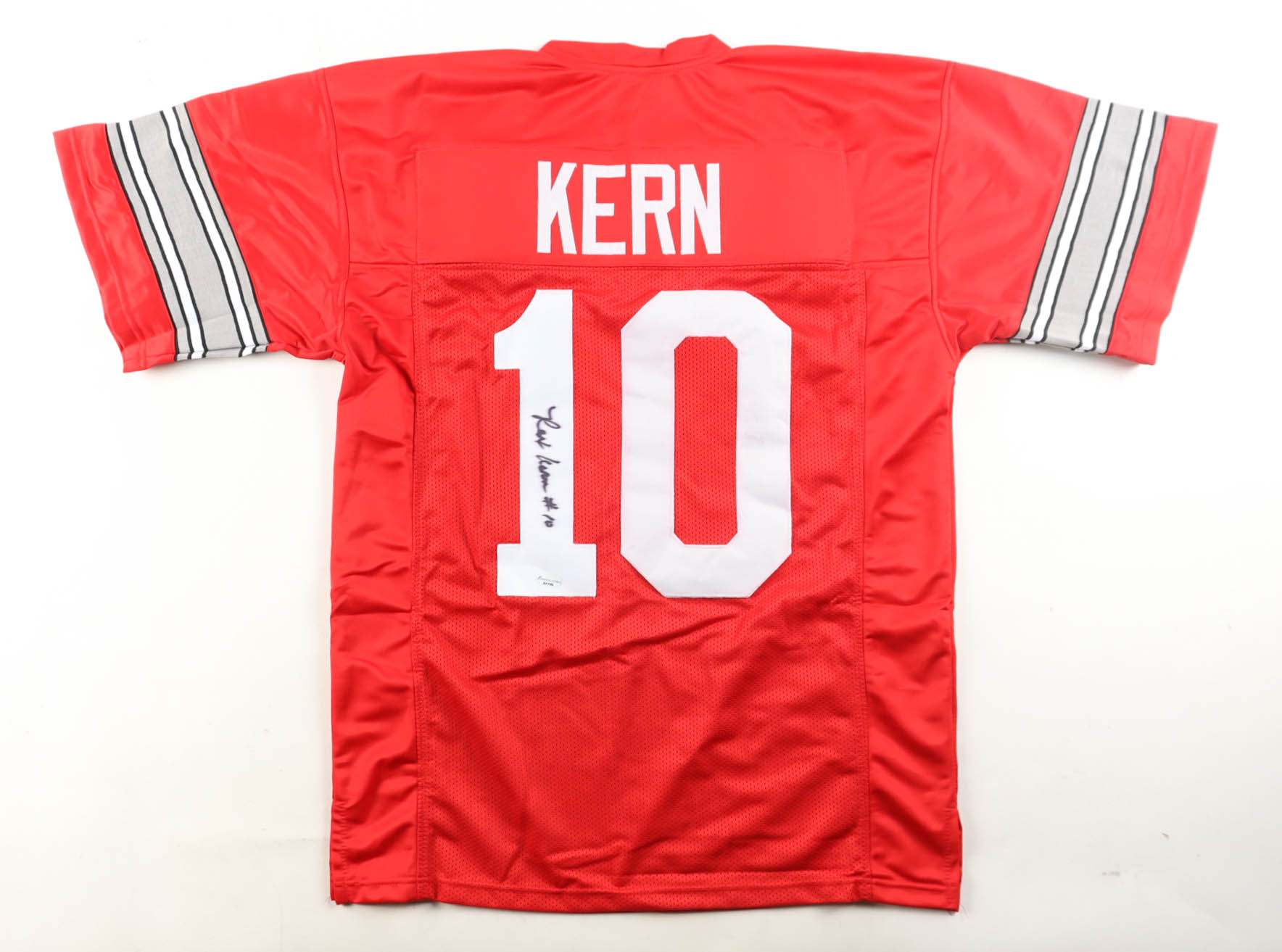 Custom jersey with everything sewn on, size XL. Hand-signed by Rex Kern Please note, the signature has bled, the reverse number is stained, and glue is visible through the jersey numbers. See photos regarding the condition of the item.