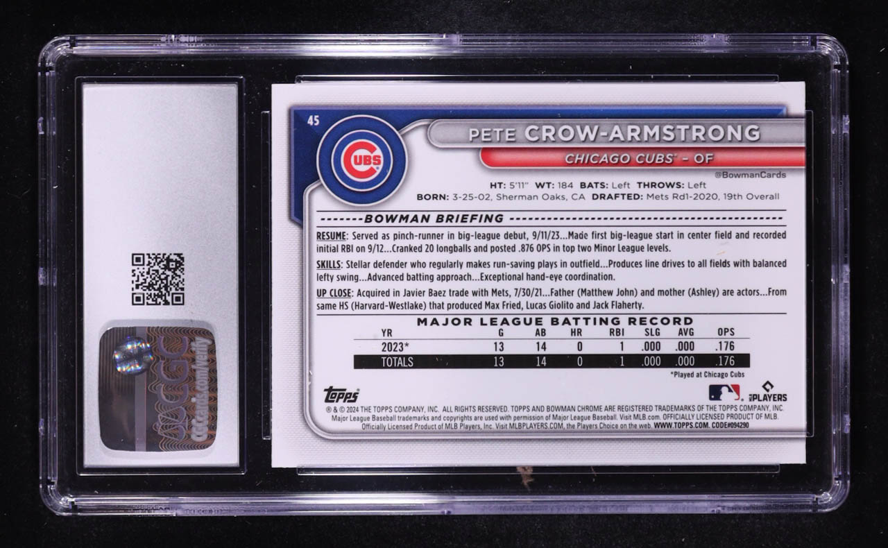 Pete Crow-Armstrong 2024 Bowman Chrome Mega Box #45 RC (CGC 10)