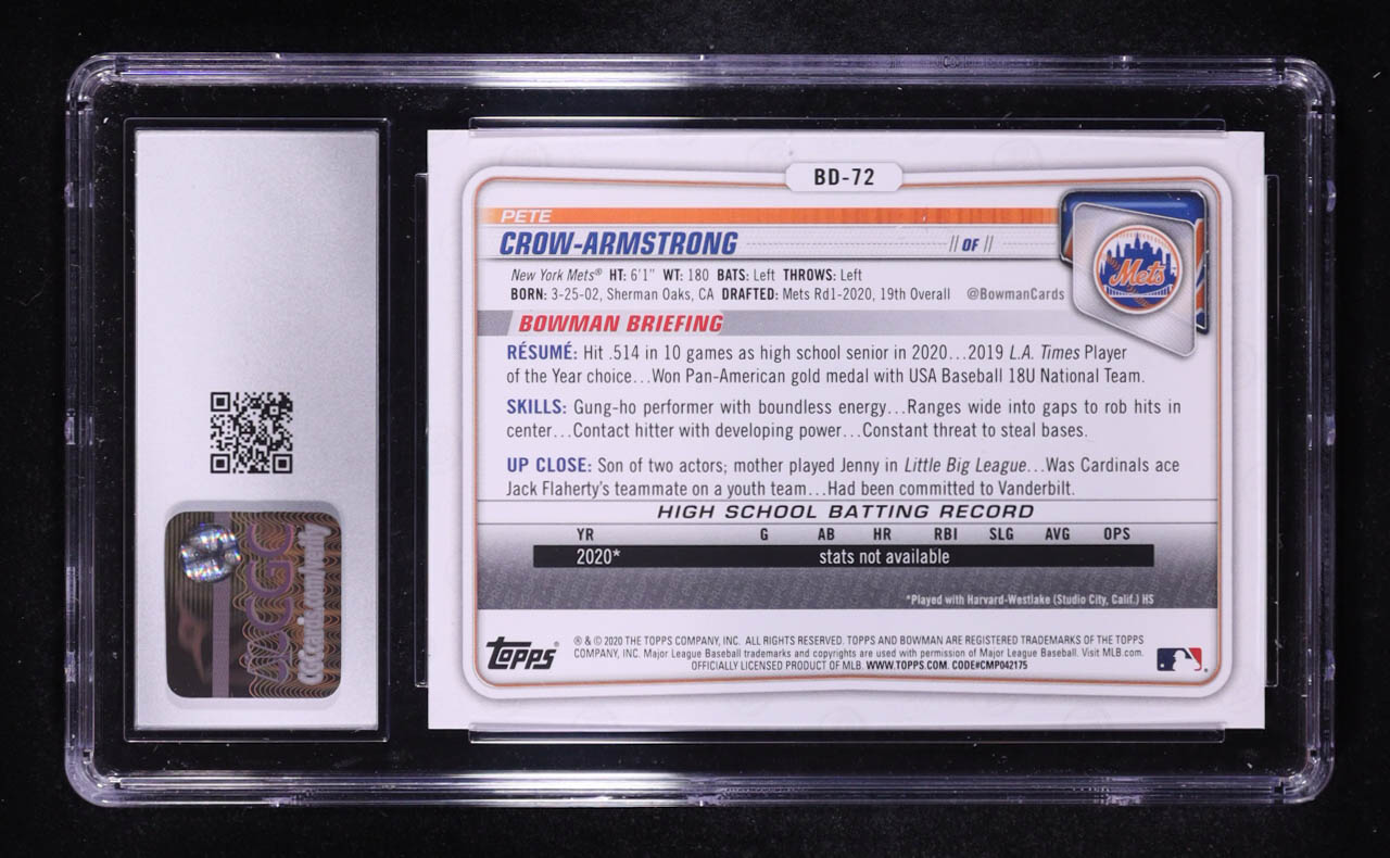 Pete Crow-Armstrong 2020 Bowman Draft #BD-72 RC (CGC 10)