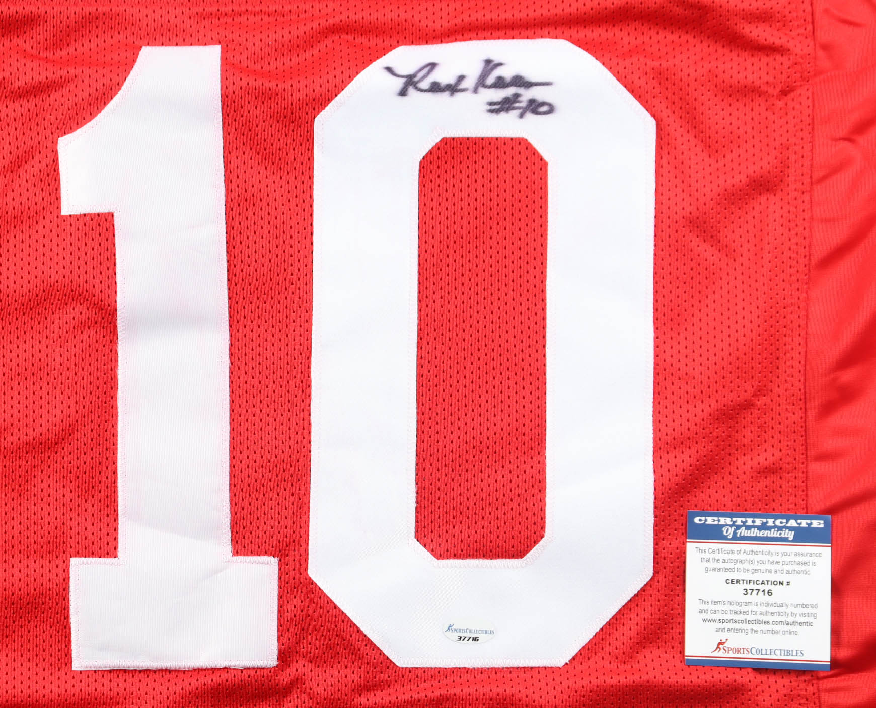 Custom jersey with everything sewn on, size XL. Hand-signed by Rex Kern Please note, the signature has bled and glue is visible through the numbers.