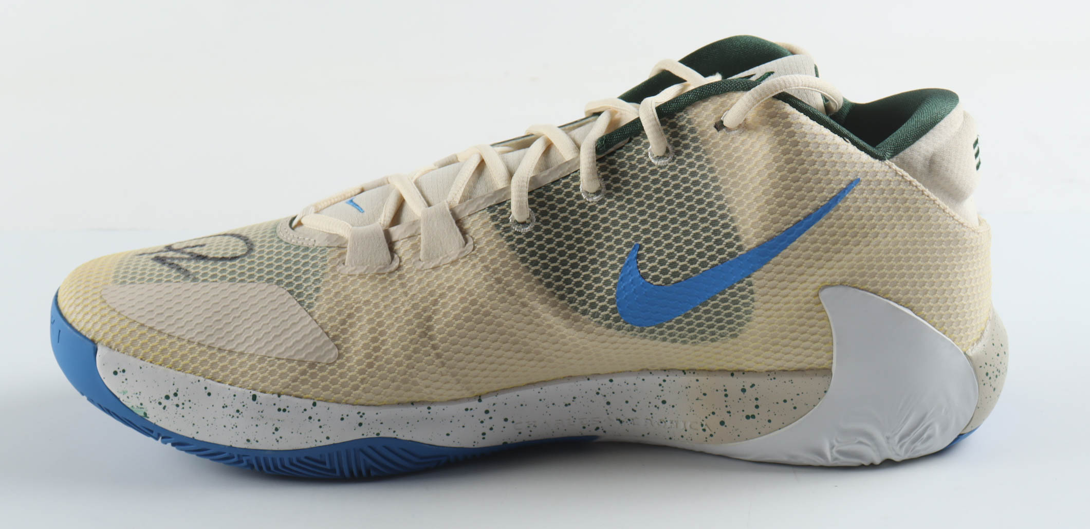 Nike Player Edition Basketball Shoe has been hand-signed by Giannis Antetokounmpo (Milwaukee Bucks).
