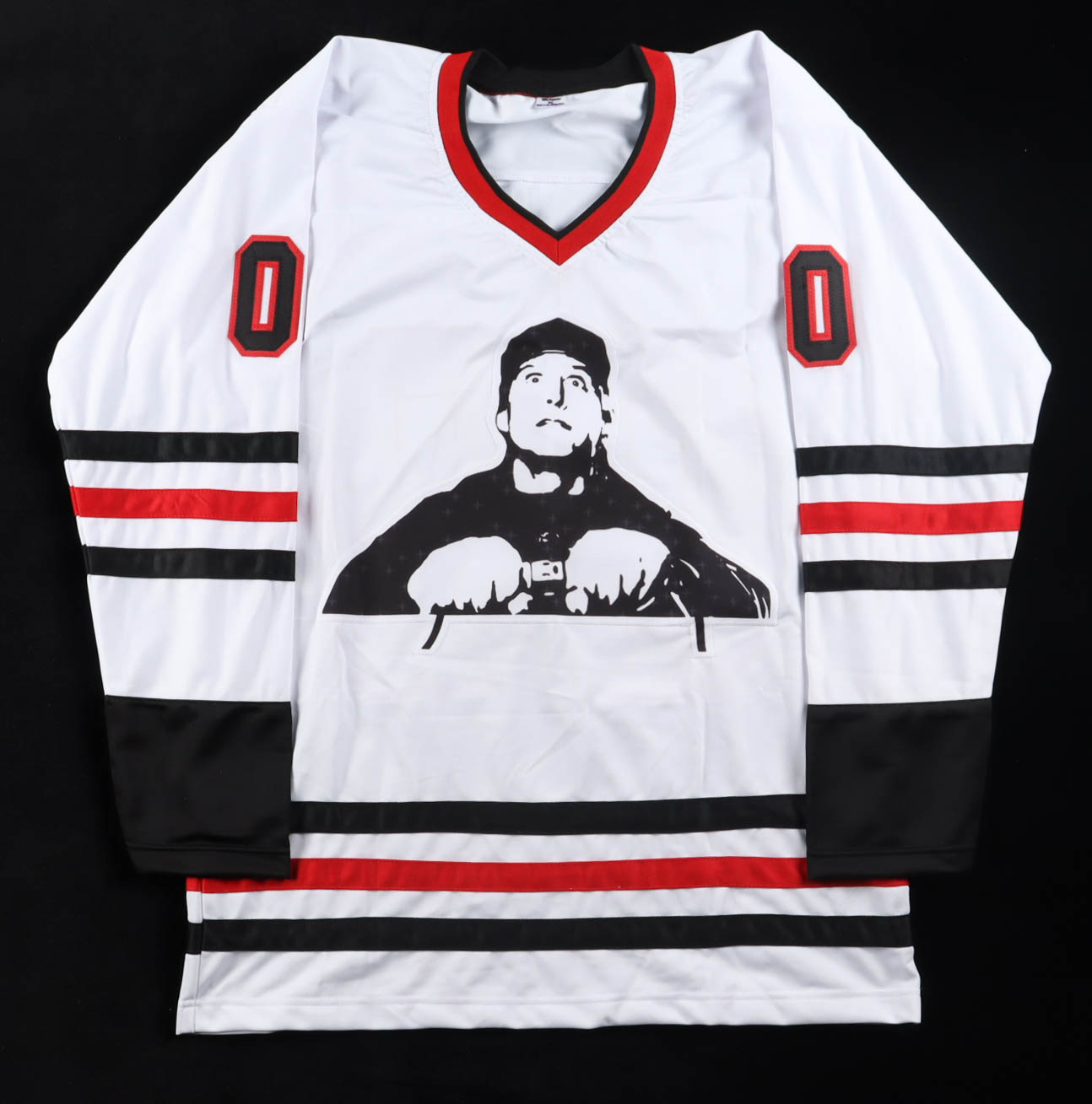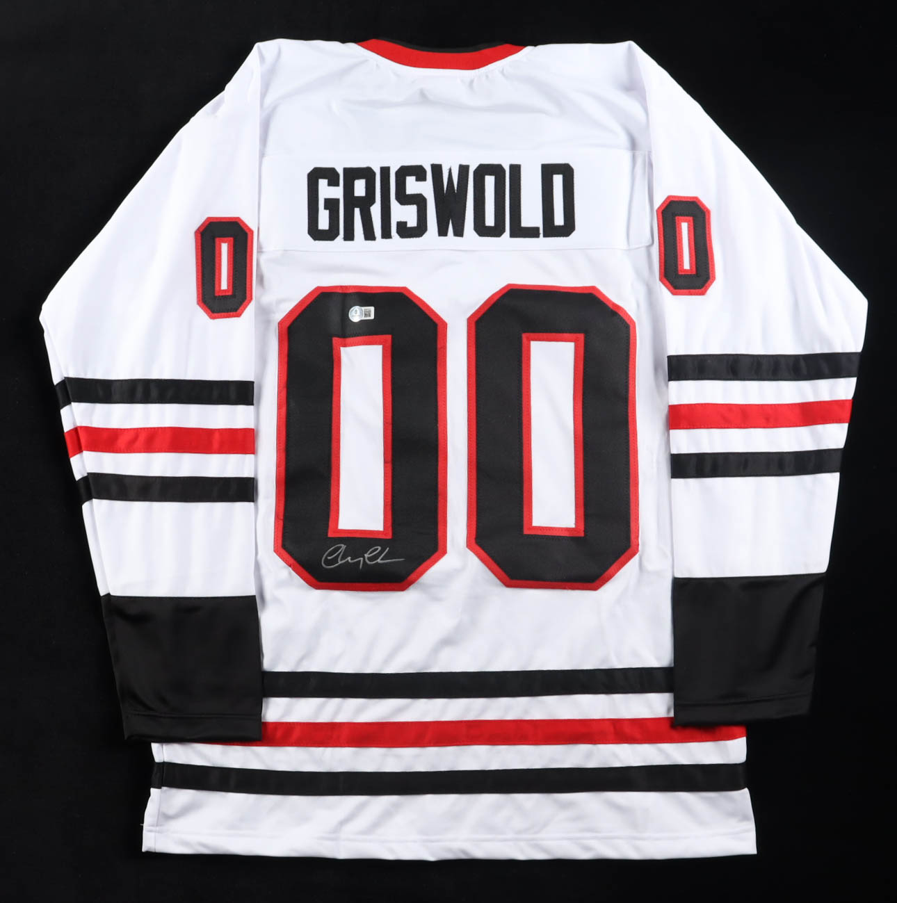 Custom jersey with everything sewn on, size XL. Hand-signed by Chevy Chase (Clark Griswold).