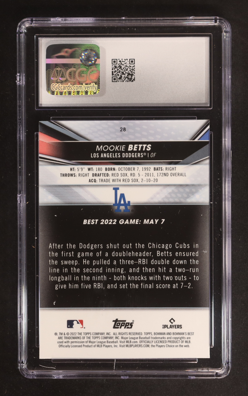 Mookie Betts 2022 Bowman's Best Atomic Refractors #28 (CGC 10)
