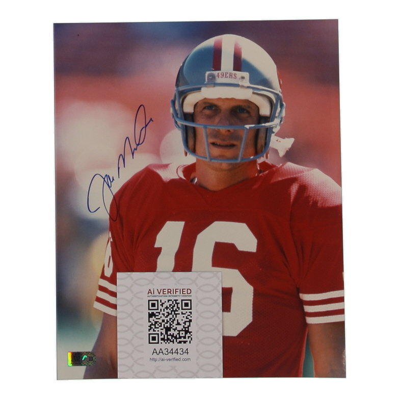 Photo measures 8" x 10" in size and has been hand-signed by Joe Montana (San Francisco 49ers, HOF).
