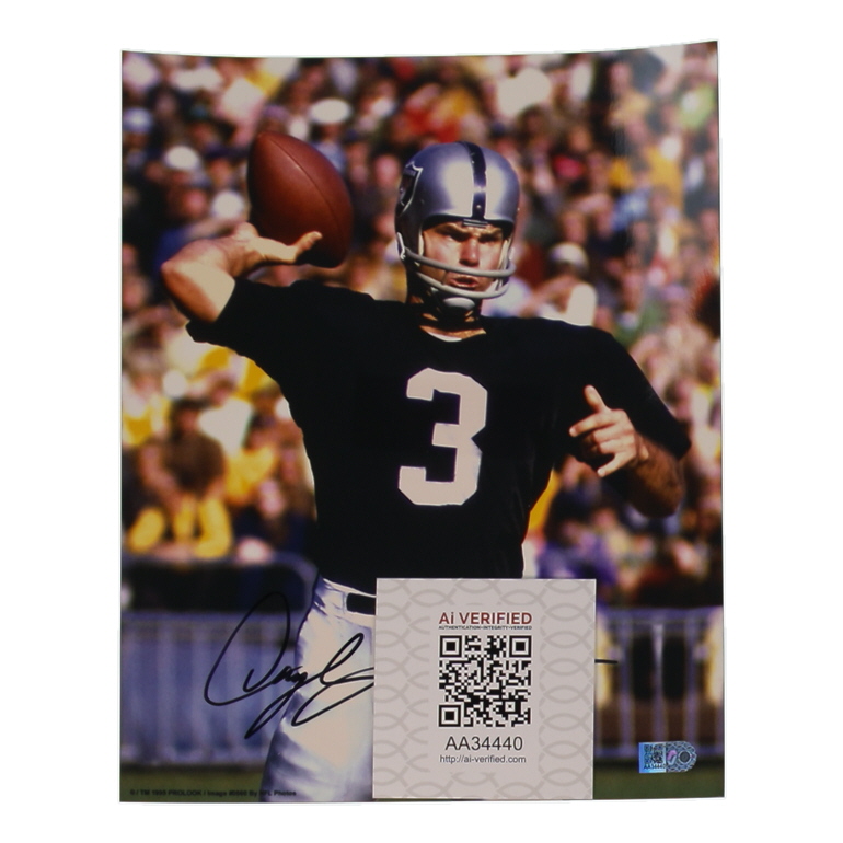 Photo measures 8" x 10" in size and has been hand-signed by Daryle Lamonica (Oakland Raiders).