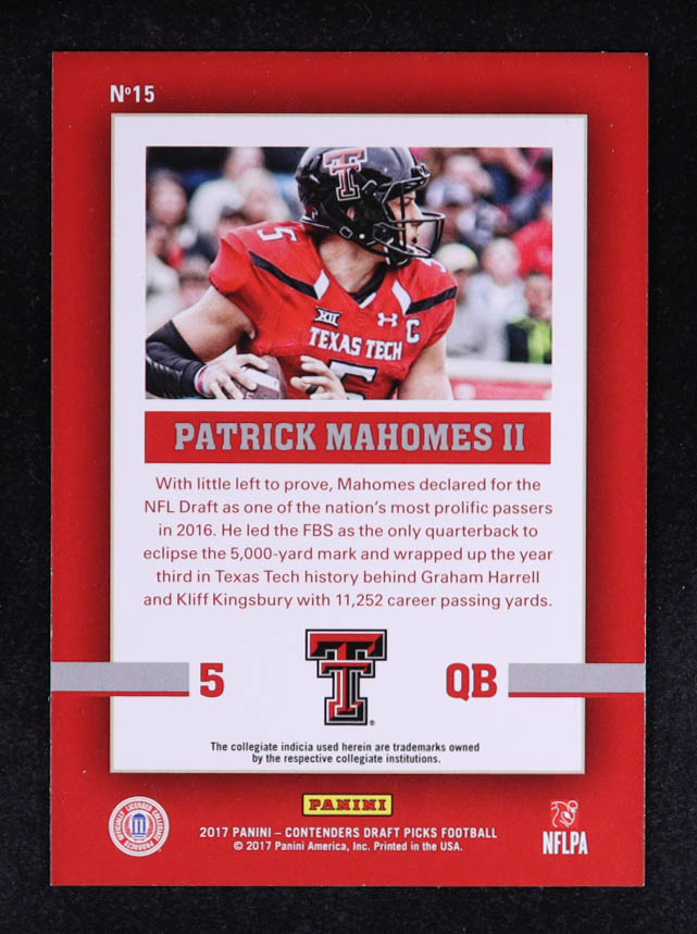 Patrick Mahomes II 2017 Panini Contenders Draft Picks School Colors #15 RC