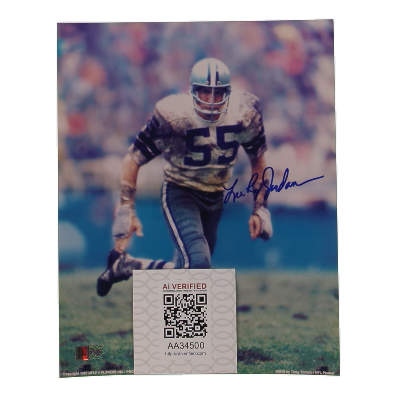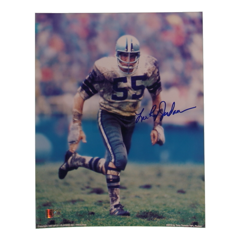 Photo measures 8" x 10" in size and has been hand-signed by Lee Roy Jordan (Dallas Cowboys).