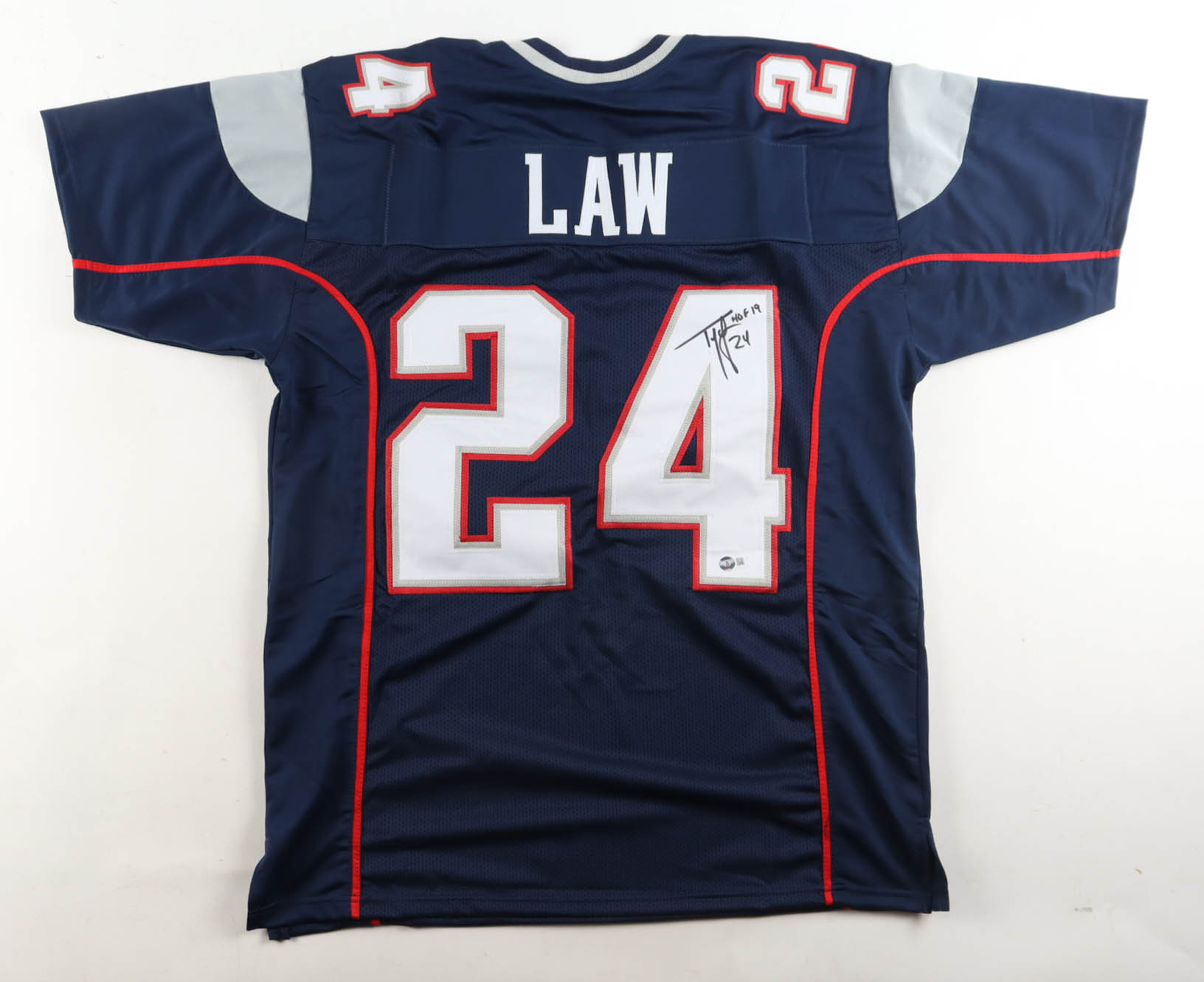 Ty Law Signed Jersey Inscribed "HOF 19" (Beckett)