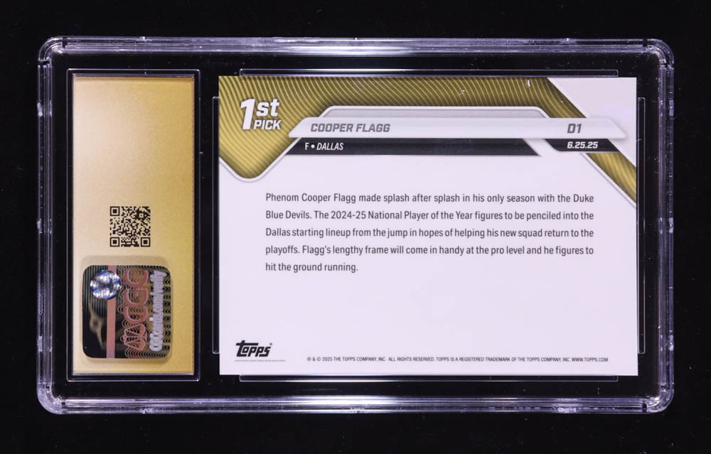 Cooper Flagg 2025-26 Topps Now #D1 RC (CGC 10 | Pristine Black Label)