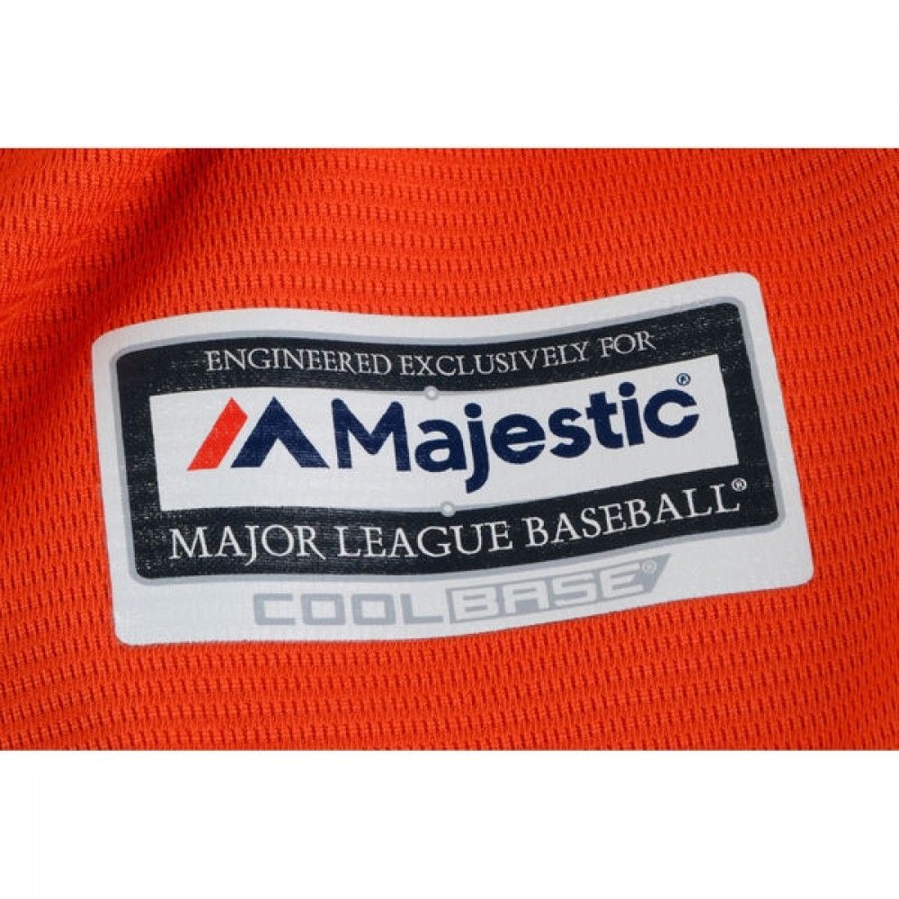 Majestic Cool Base on-field style jersey, everything is sewn on. The jersey has been hand-signed in silver paint pen by Jose Altuve.