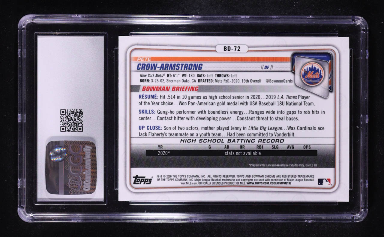 Pete Crow-Armstrong 2020 Bowman Draft Chrome #BD-72 RC (CGC 10)