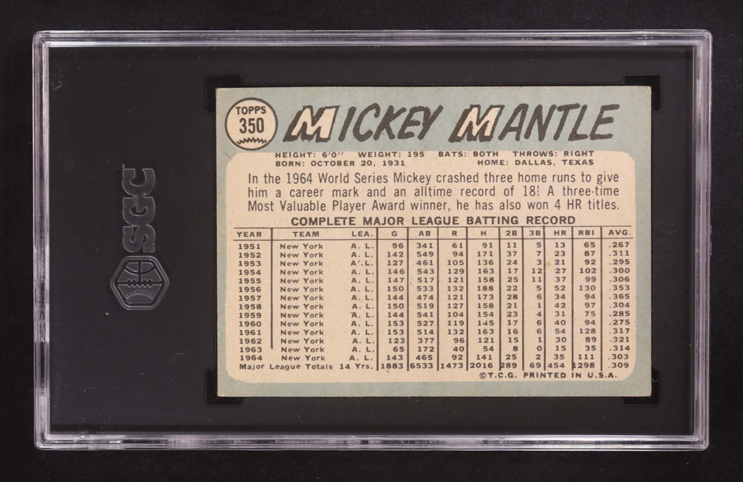 Mickey Mantle 1965 Topps #350 (SGC 4)