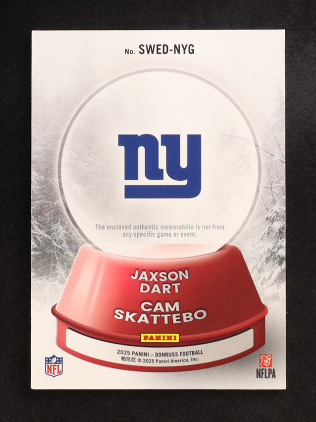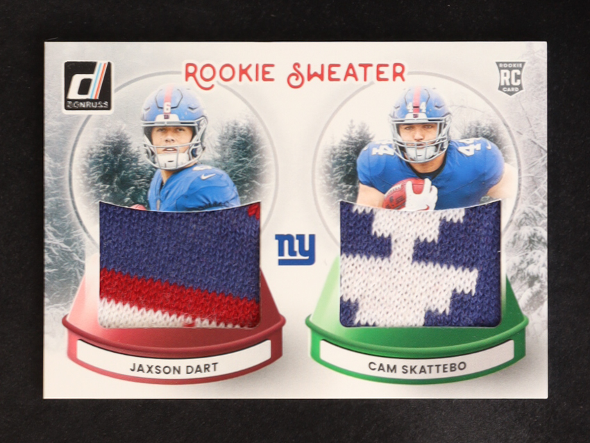 Cam Skattebo / Jaxson Dart 2025 Donruss Rookie Holiday Sweater Dual #3 RC