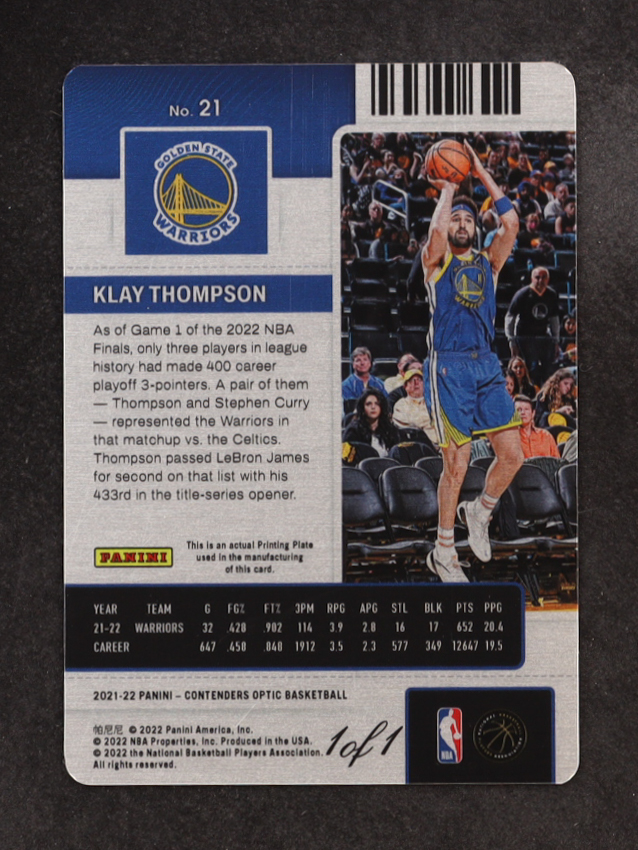 Klay Thompson 2021-22 Panini Contenders Optic Printing Plates Magenta #21 #1/1