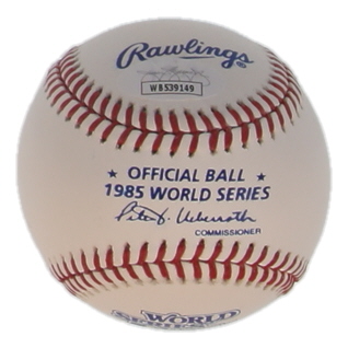 Rawlings Official 1985 World Series baseball has been hand-signed and inscribed by Bret Saberhagen (Kansas City Royals).