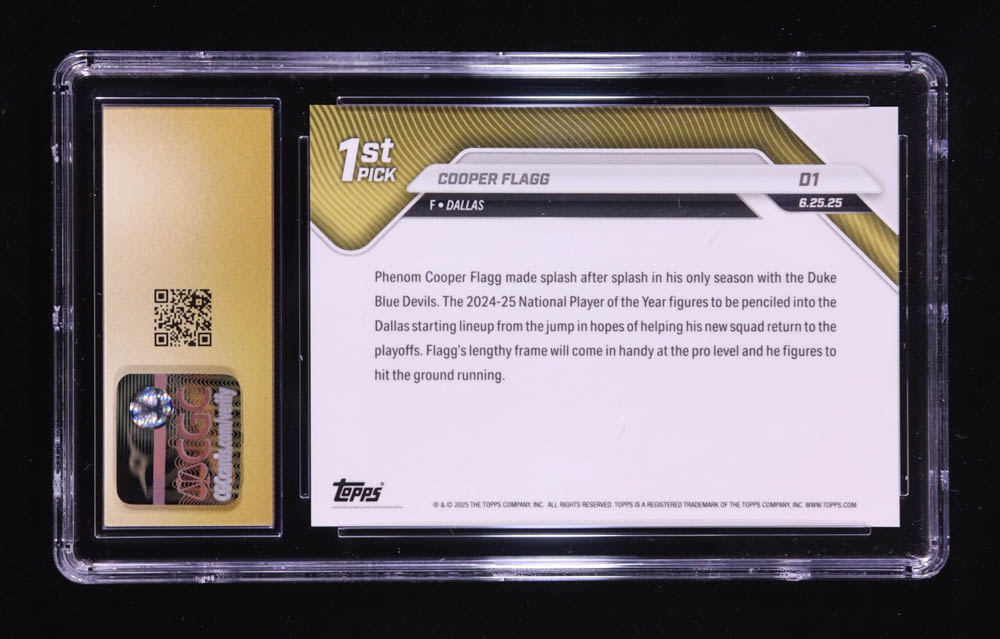 Cooper Flagg 2025-26 Topps Now #D1 RC (CGC 10 | Pristine Black Label)