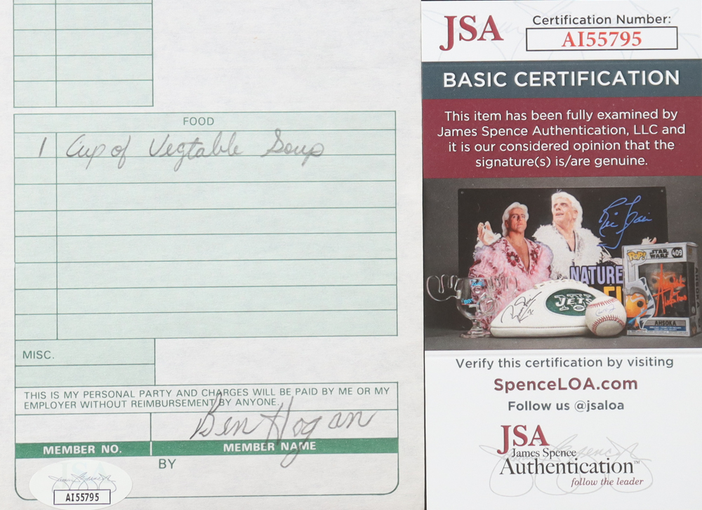 Receipt measures 4.5" x 8" in size. Hand-signed by Ben Hogan (D. 1997).