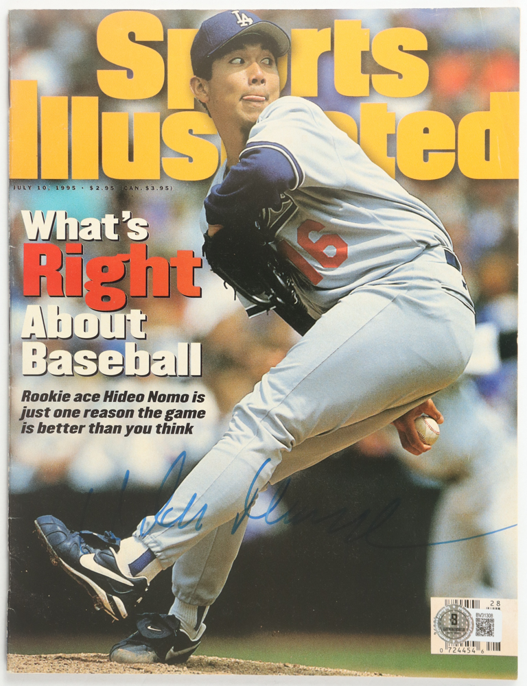 July 10th, 1995 issue of Sports Illustrated Magazine. Hand-signed on the front cover by Hideo Nomo (Los Angeles Dodgers, HOF).