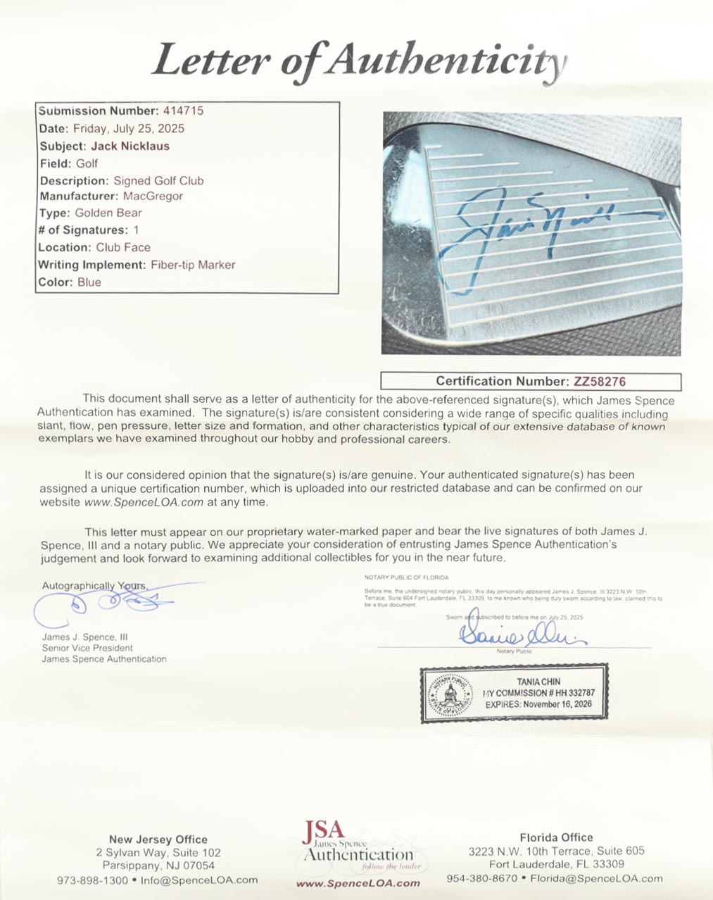 The autograph(s) includes an official James Spence Authentication (JSA) hologram and matching LOA for authenticity purposes.