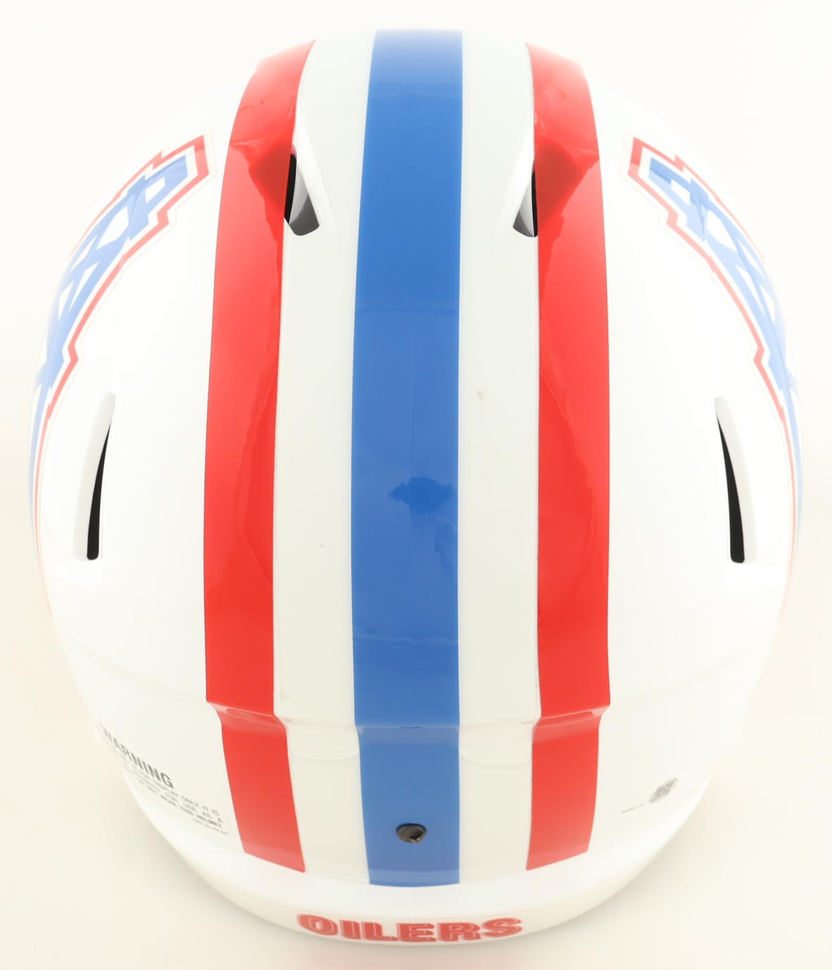 Riddell Houston Oilers full-size replica speed helmet has been hand-signed and inscribed by Warren Moon (HOF).