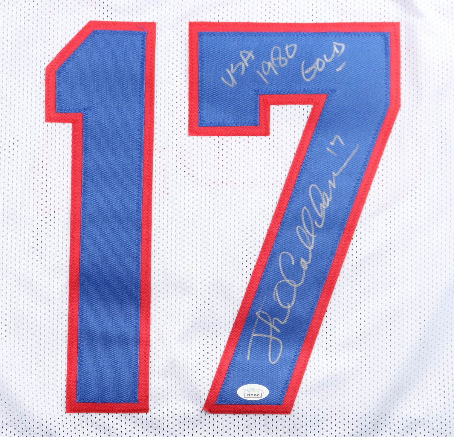 Jack O'Callahan Signed Jersey Inscribed "USA 1980 Gold" (JSA)