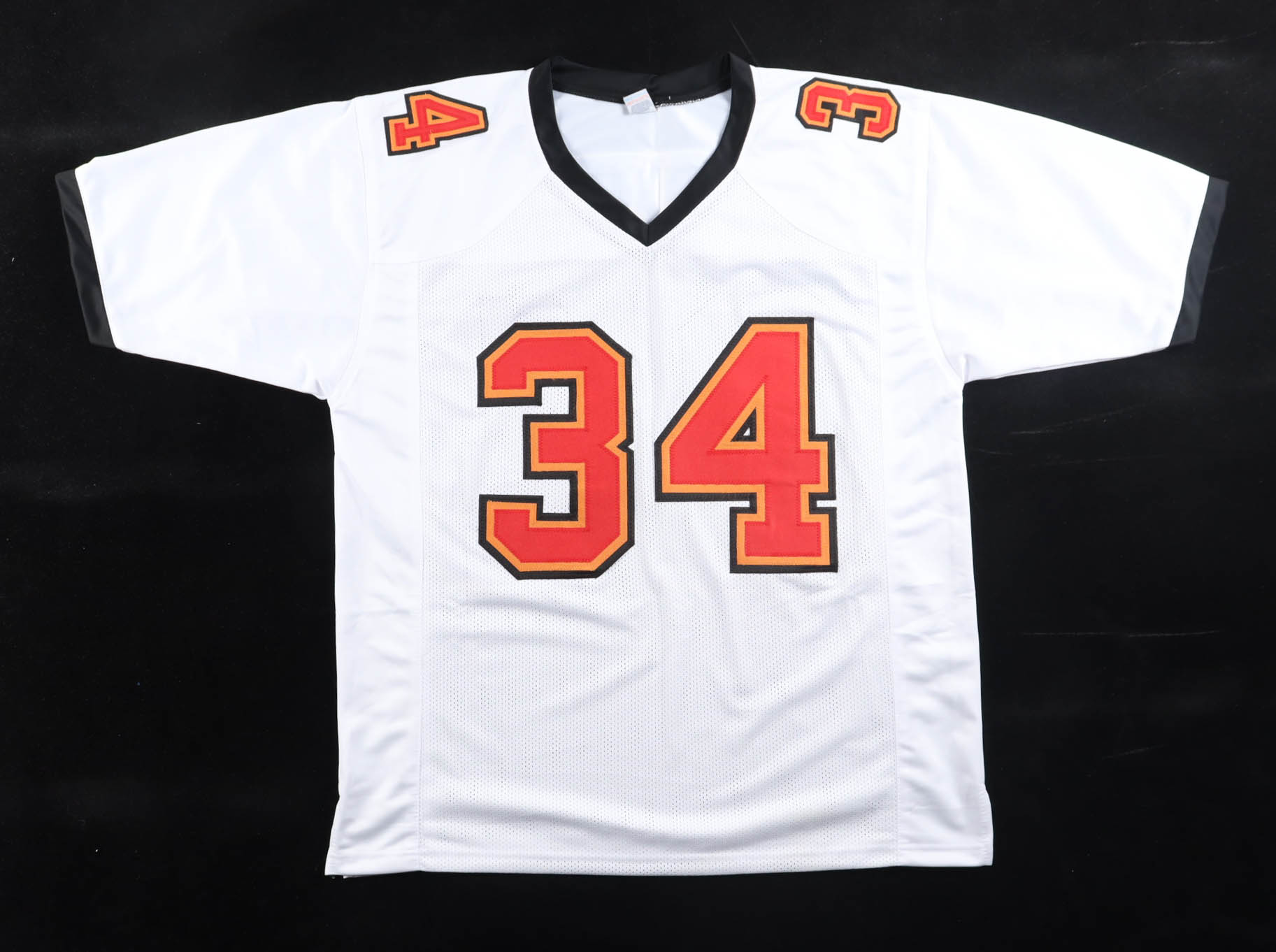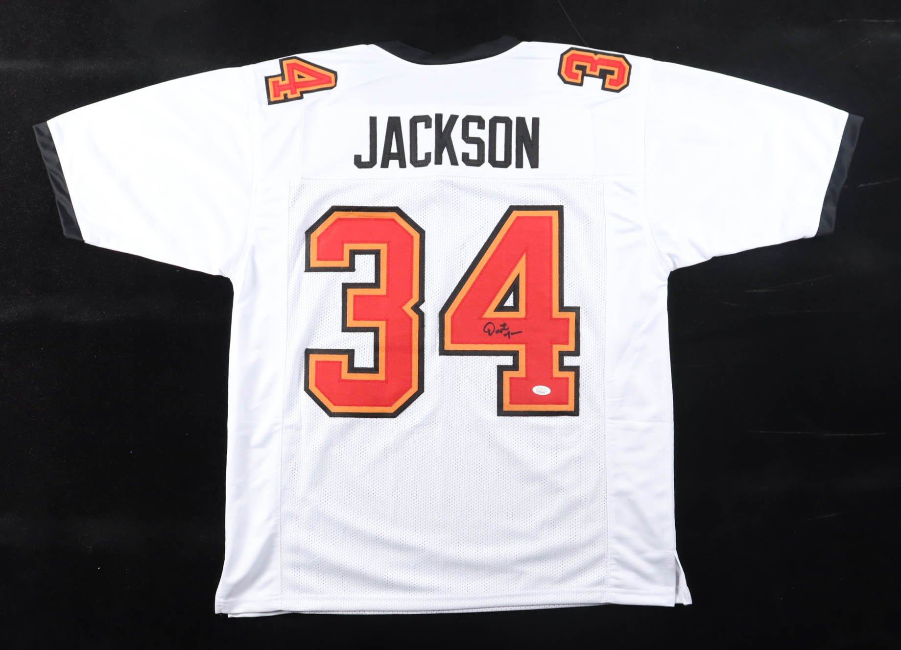 Custom jersey with everything sewn on, size XL. Hand-signed by Dexter Jackson.