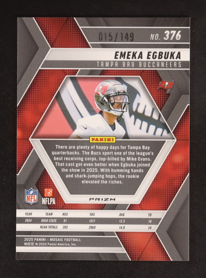 Emeka Egbuka 2025 Panini Mosaic Silver Knight #376 RC #015/149