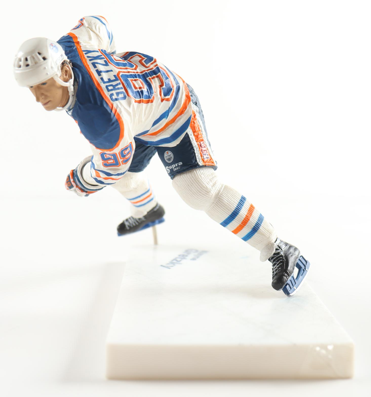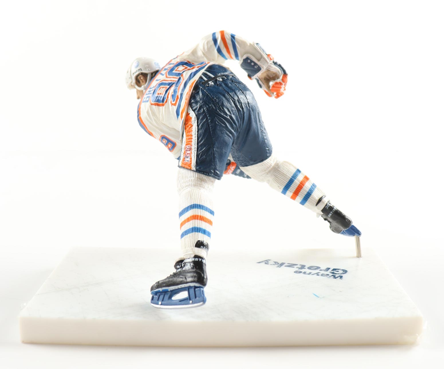 Replica figurine measures approximately 6" tall of Wayne Gretzky (Edmonton Oilers, HOF). Please note that the item is unsigned and does come in the original packaging.