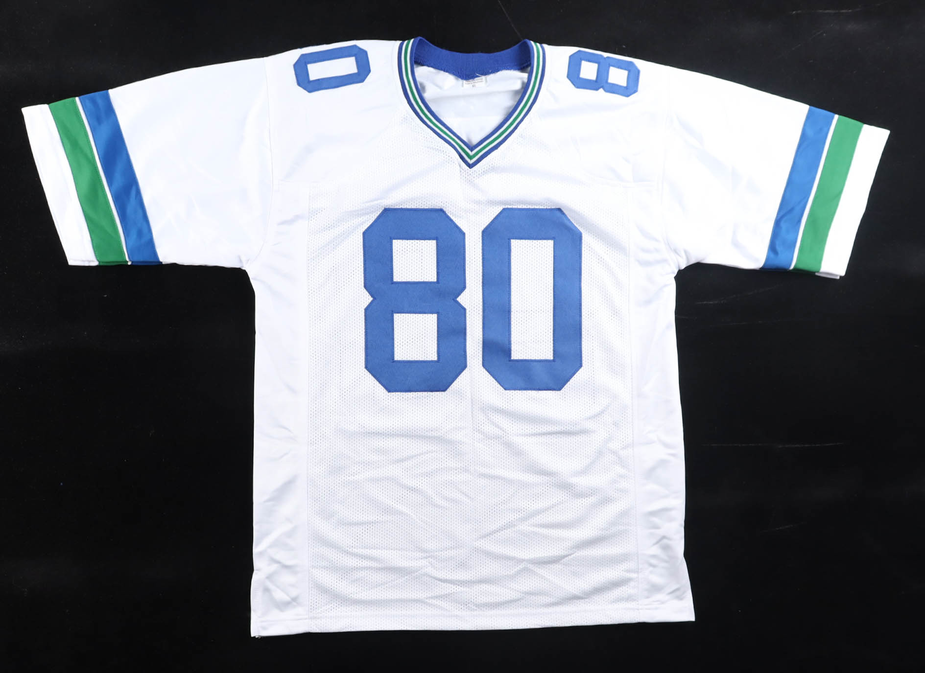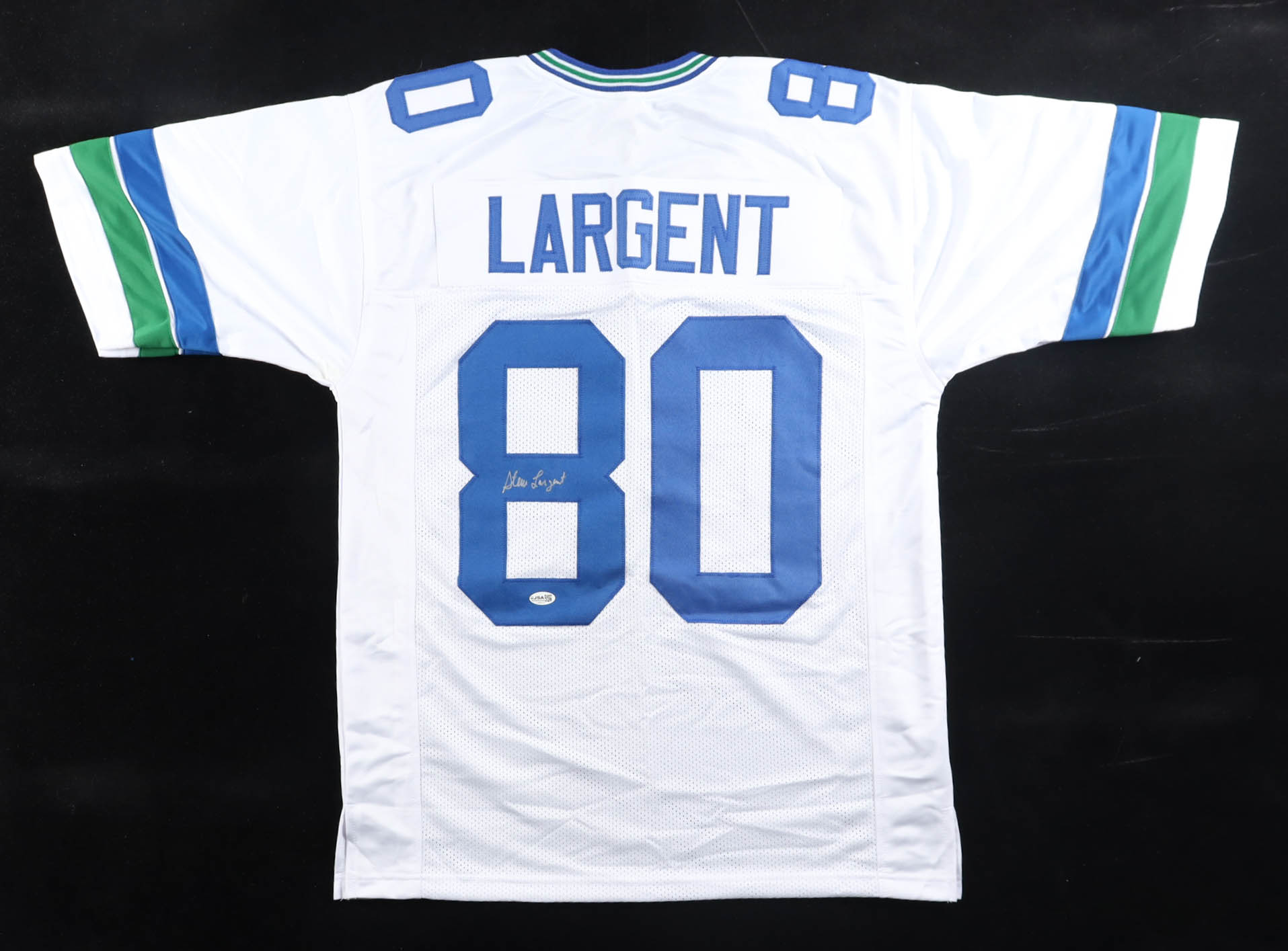 Custom jersey. Everything is sewn on, size XL. Hand-signed by Steve Largent (HOF).